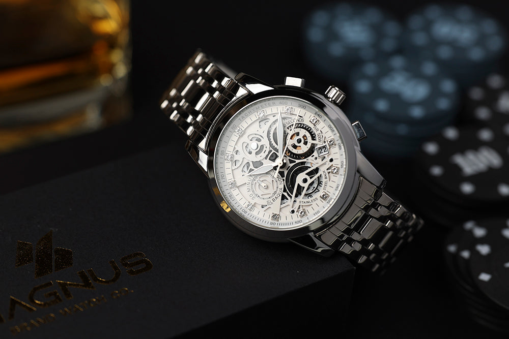 En comparación con otros relojes de diseño similar, los relojes de la marca Magnus tienen un verdadero modelado 3D personalizado debajo del cristal de zafiro, a diferencia de los relojes con tapa de papel que se encuentran en otros lugares. www.magnus.watch o www.magnus-luxury.com, magnus-brand.nl, magnus-brand.com, magnus-brand.es son los únicos lugares donde puedes comprar relojes oficiales de la marca Magnus. Tenga en cuenta que se pueden comprar relojes falsificados o falsificados en línea. Magnus Brand no es responsable de ninguna compra realizada en ningún otro sitio web.